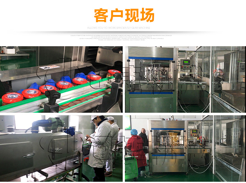 該生產(chǎn)線適合中小口徑三旋、四旋玻璃瓶調(diào)味醬的分裝,適合醬料、含顆粒黏稠物料的灌裝,物料接觸部分均采用316不銹鋼,整機(jī)304不銹鋼,符合食品衛(wèi)生標(biāo)準(zhǔn)。該機(jī)設(shè)計(jì)合理,機(jī)型小巧,立式結(jié)構(gòu),節(jié)省場(chǎng)地,操作方便。啟動(dòng)部分均采用FESTO和臺(tái)灣AirTack的氣動(dòng)元件。灌裝閥有氣動(dòng)閥控制,灌裝精度更高,灌裝量和灌裝速度均可任意調(diào)整,灌裝悶頭采用防拉絲及升降灌裝裝置。
